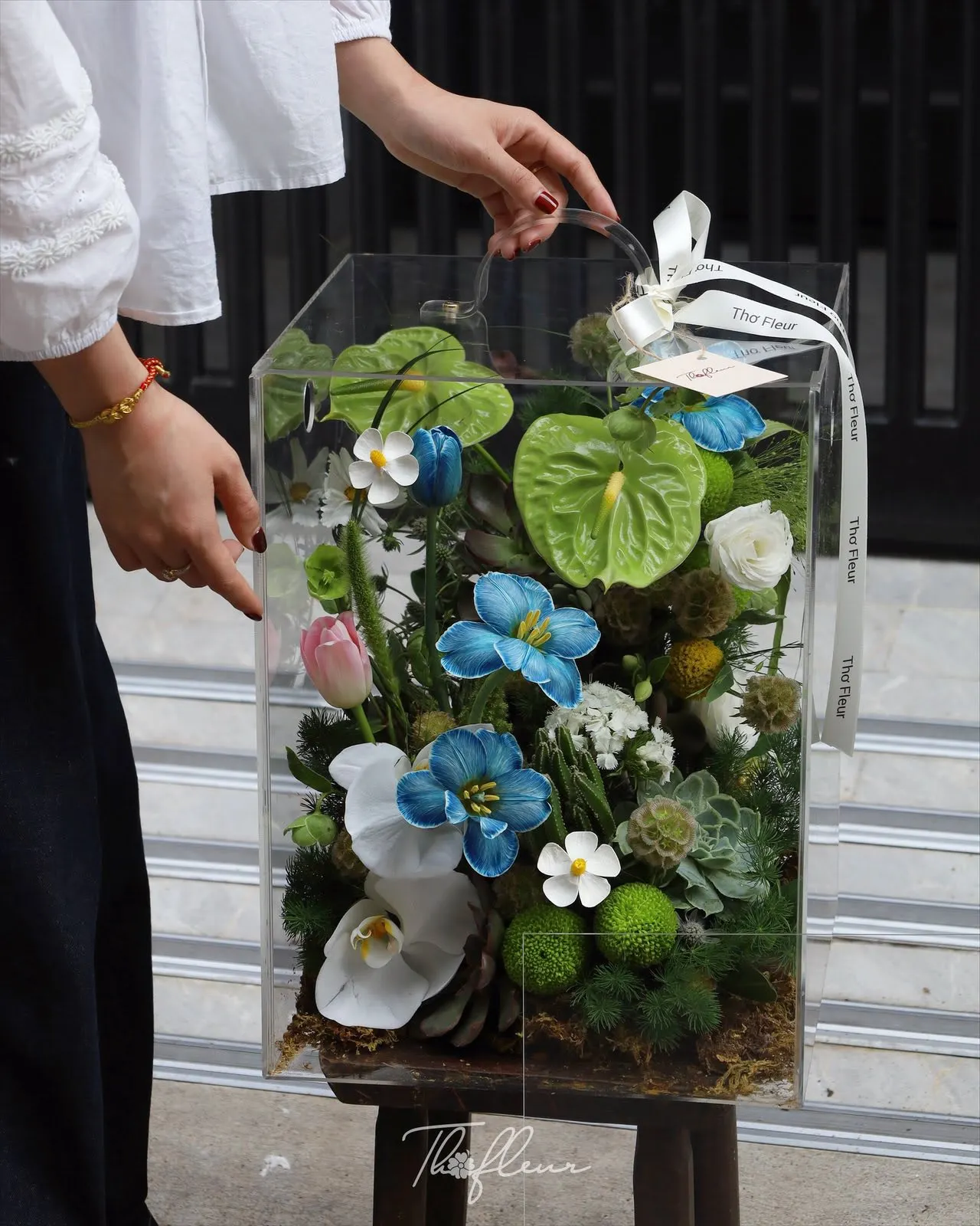 Không chỉ chú trọng vào vẻ đẹp bên ngoài, hộp hoa còn được chăm chút kỹ lưỡng về chất lượng. Hoa được lựa chọn từ những bông tươi nhất, đảm bảo độ bền và giữ được vẻ đẹp lâu hơn. Phần hộp và các phụ kiện đi kèm cũng được thiết kế chắc chắn, tinh tế, giúp sản phẩm giữ được form dáng hoàn hảo trong suốt quá trình trưng bày. Điều này không chỉ mang lại trải nghiệm tốt hơn cho người nhận mà còn thể hiện sự chuyên nghiệp và tâm huyết trong từng sản phẩm.