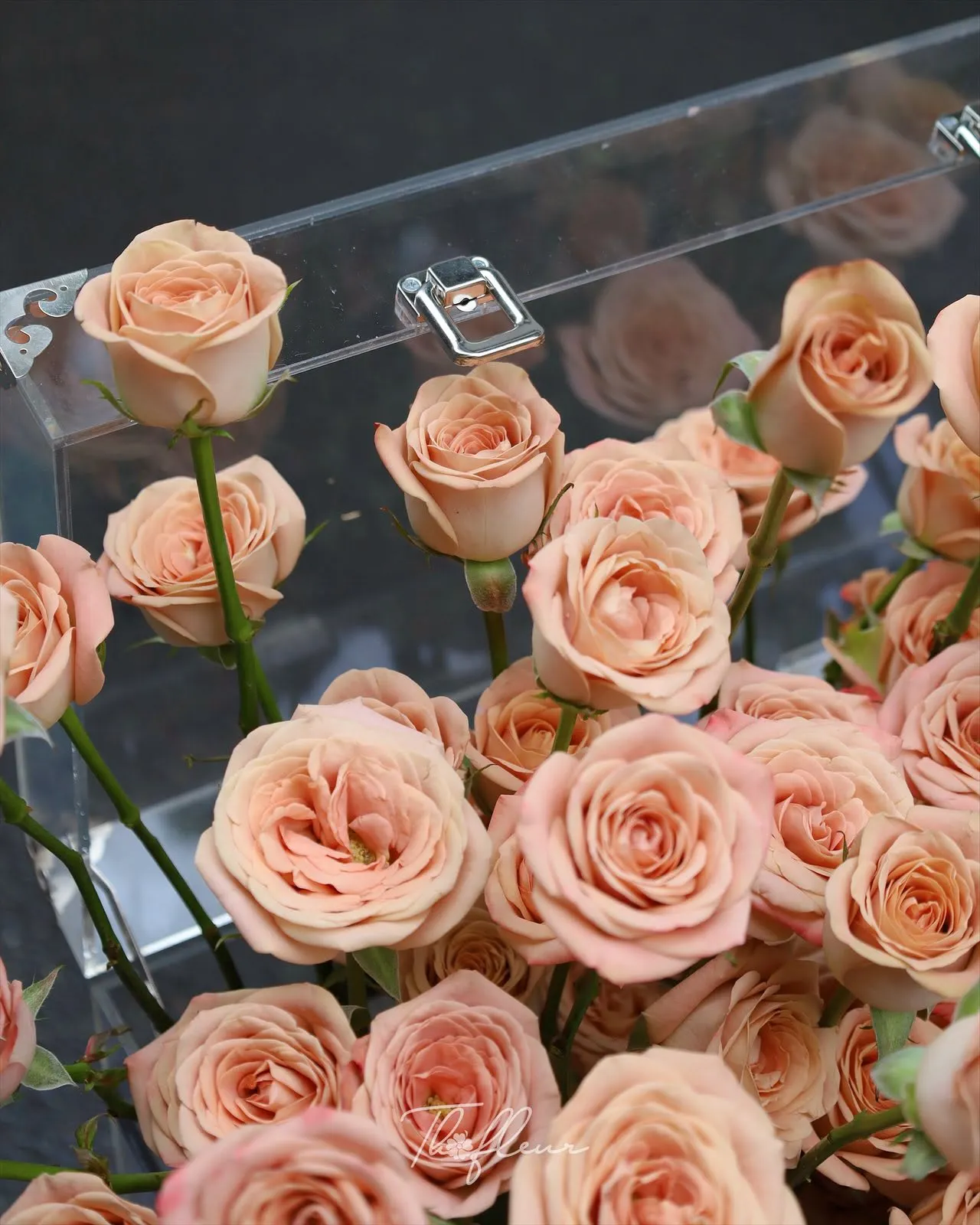 Ngay từ ánh nhìn đầu tiên, hộp hoa đã gây ấn tượng mạnh với tạo hình trái tim đầy lãng mạn. Thiết kế này không chỉ mang tính thẩm mỹ cao mà còn truyền tải thông điệp rõ ràng về tình yêu và sự gắn kết. Những bông hoa hồng Juliet được sắp xếp tỉ mỉ, xen kẽ và đan cài một cách khéo léo để tạo nên hiệu ứng 3D sống động, giúp tổng thể hộp hoa trở nên nổi bật và có chiều sâu. Mỗi góc nhìn đều mang lại một cảm nhận khác nhau, khiến người nhận không khỏi ngỡ ngàng trước sự kỳ công và sáng tạo của người thiết kế.